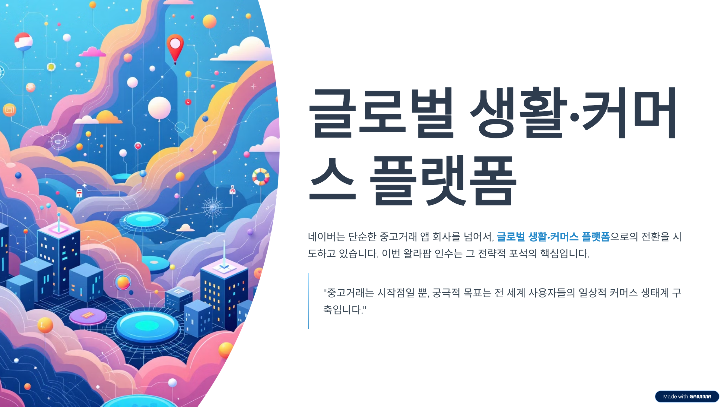 왈라팝은 스페인의 거대한 장터, 1,900만 MAU의 발걸음이 모이는 곳입니다. 네이버는 그곳에 단순한 자본을 넣은 것이 아닙니다 — 자신들이 잘하는 기술을 심어 글로벌 C2C의 심장을 키우려 합니다.